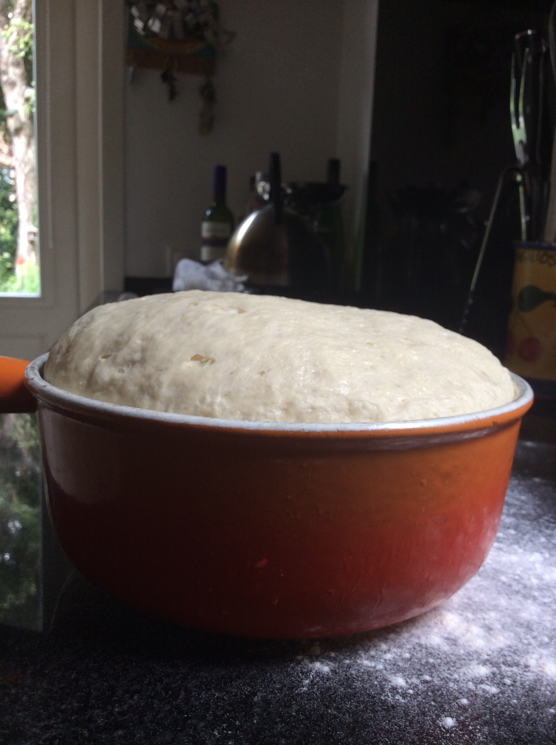 Resulting from the 5 minutes of kneading, you should have an even and slightly stretchy dough, as seen on the picture above. Form it into a ball, and transfer to a greased bowl.