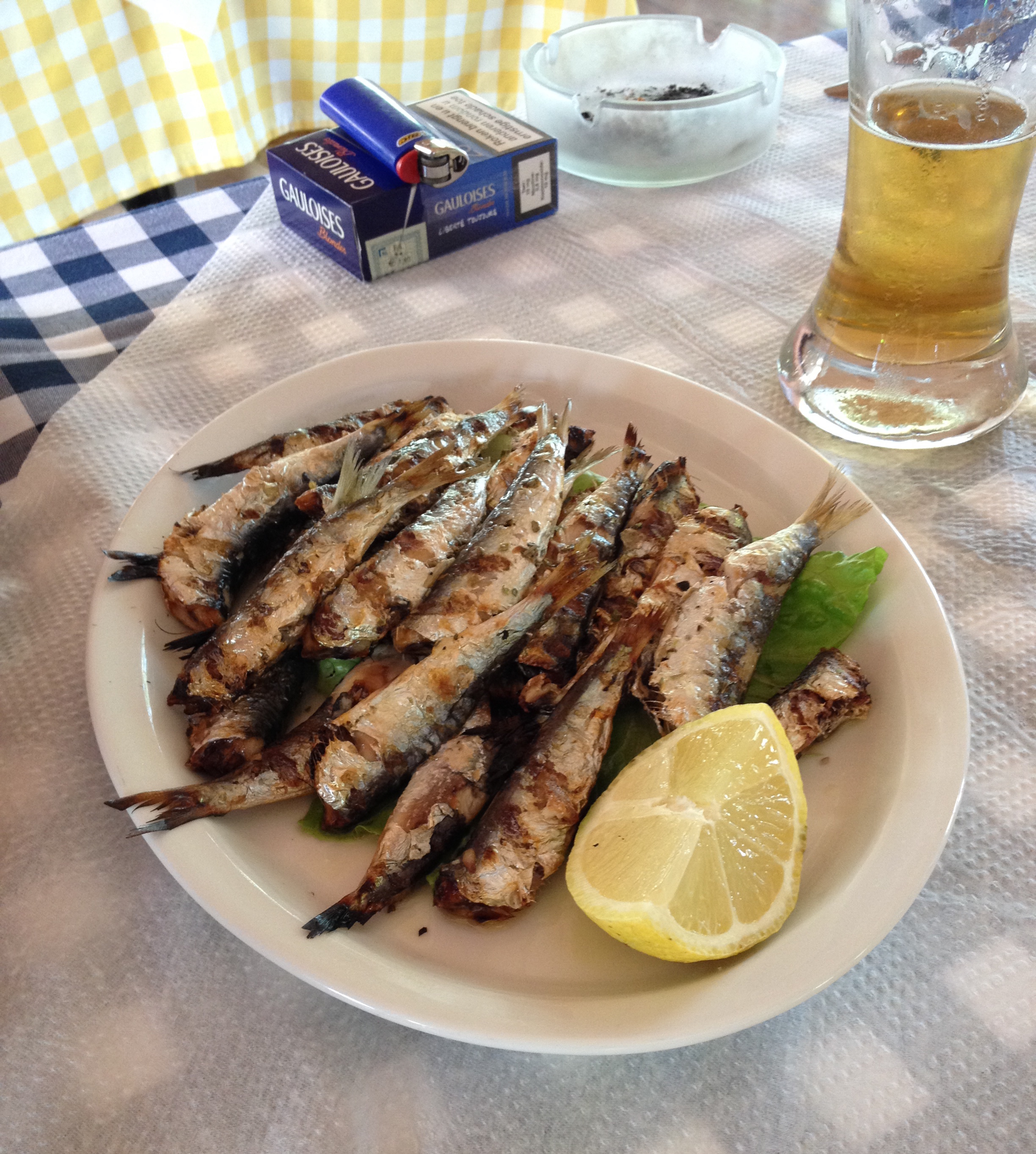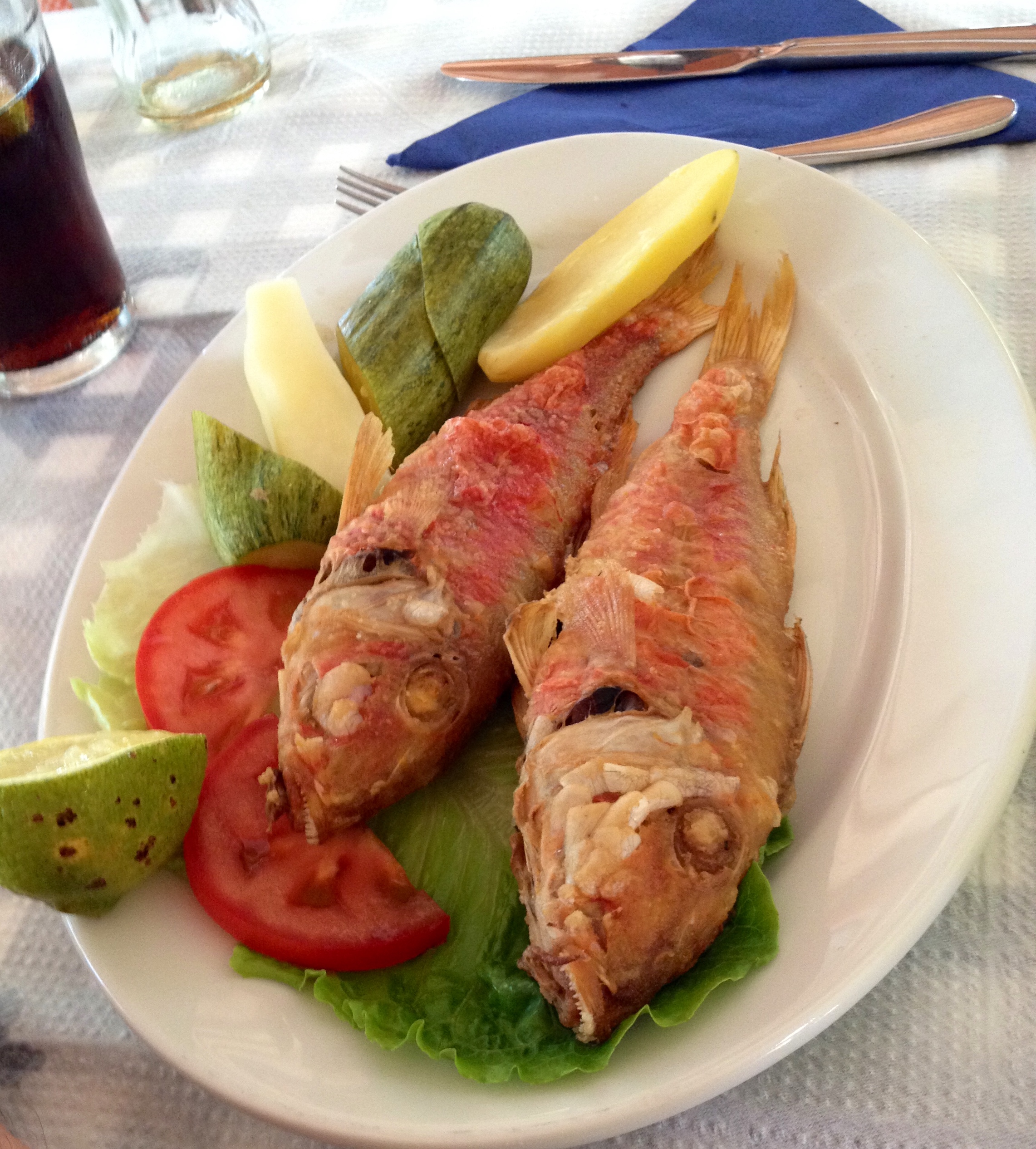 My father always chooses the fish option, no matter where he goes, so he particularly enjoyed being on an island. He chose the red mullets, which where fried as a whole, probably also simply with garlic, onion, and olive oil. Aren’t they beautiful? You can even see their little teeth. It’s good to know that your food is actually fresh, and that you are actually able to see what it is. It does enhance the experience.