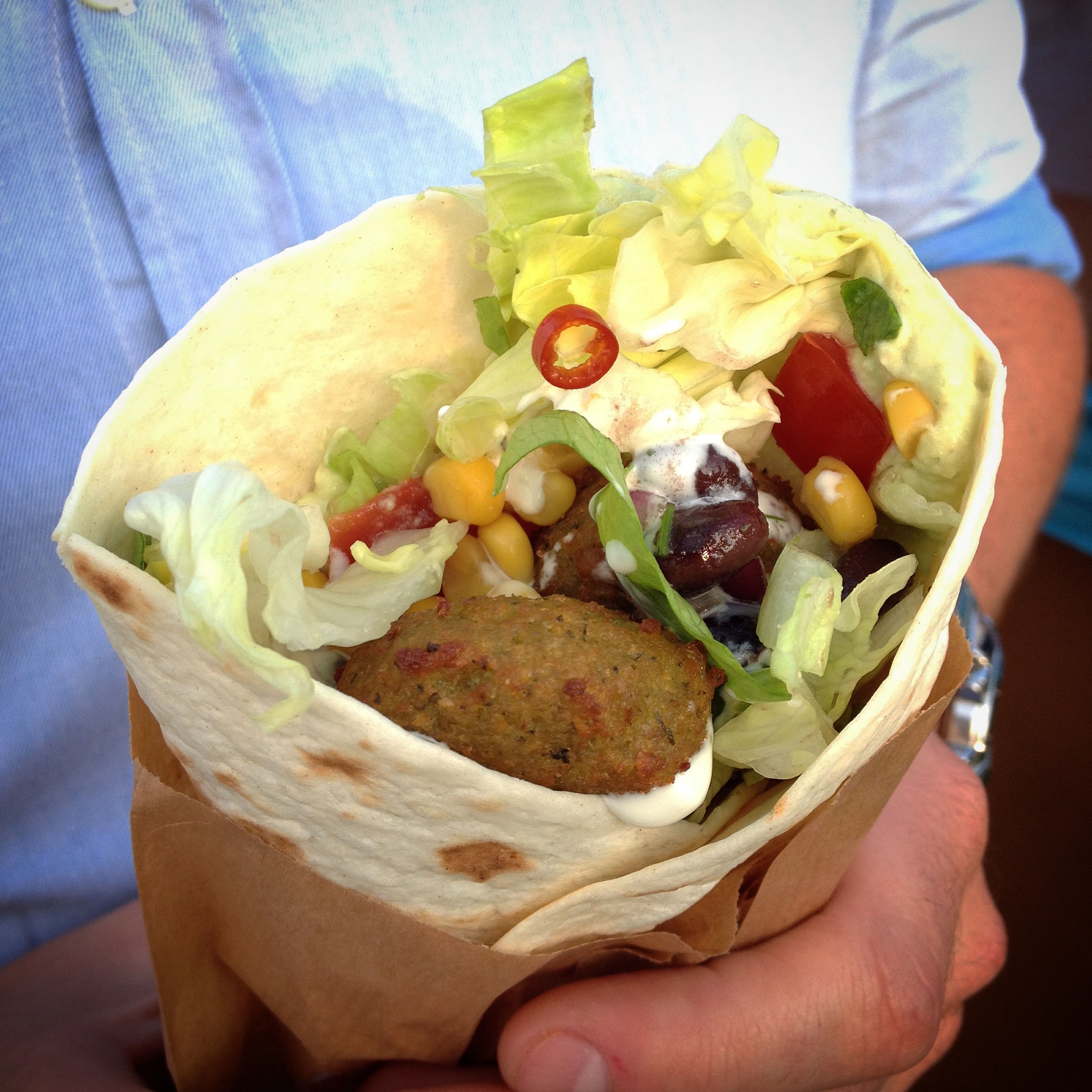 Finally, we spotted a food truck called Wheely Good, where they served wraps. Specifically, wraps with falafel. I love falafel so much, but this one was not so tasty as I would have liked. They were properly cooked, and not oily which is the worst. But they lacked in salt and seasoning overall. A real pity as the ingredients were all great.