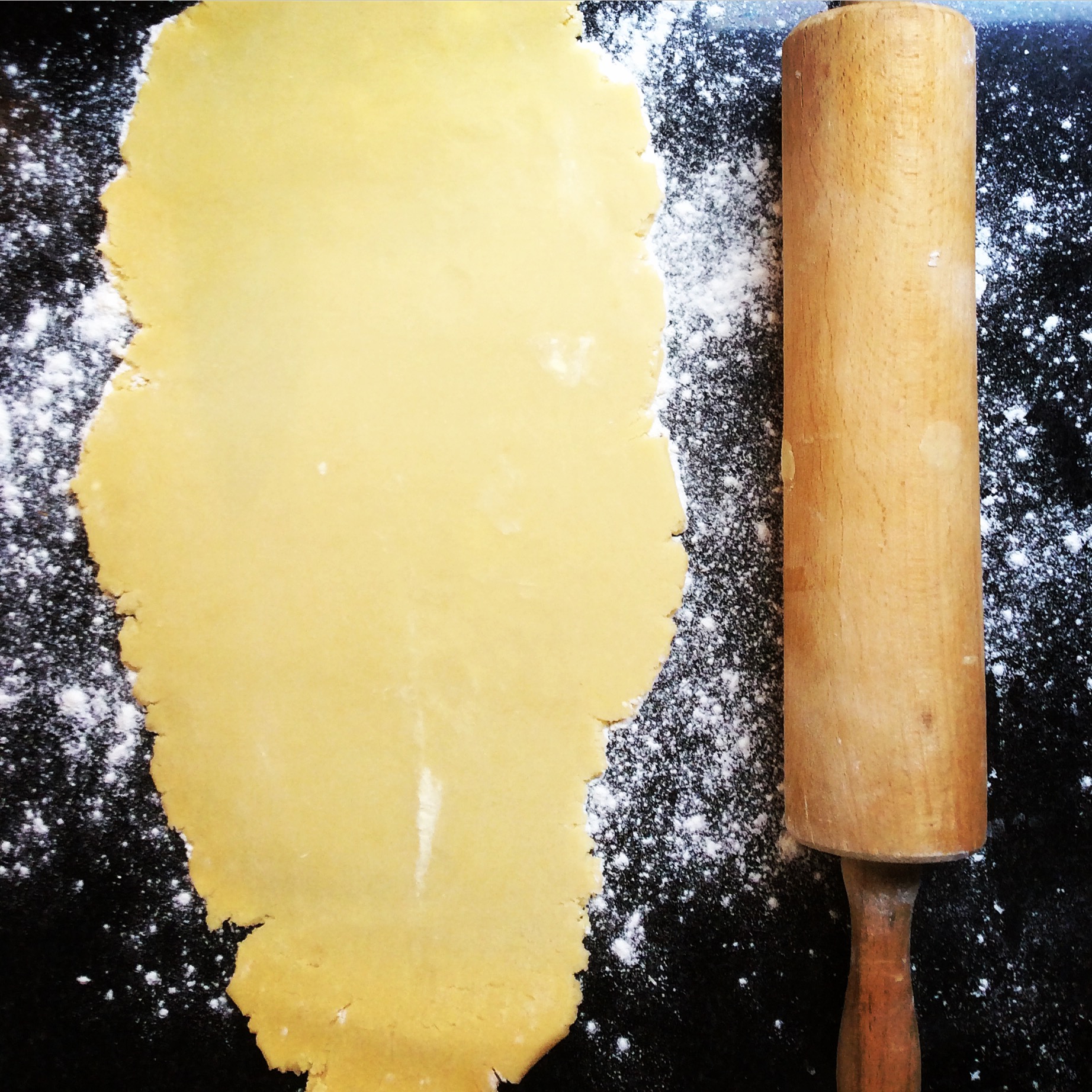 - Sieve the flour and salt in the mixing bowl. Dice the butter and add to the flour. Proceed to add the vanilla and sugar. Bring it all together with your hands until you’ve got a solid compact ball.