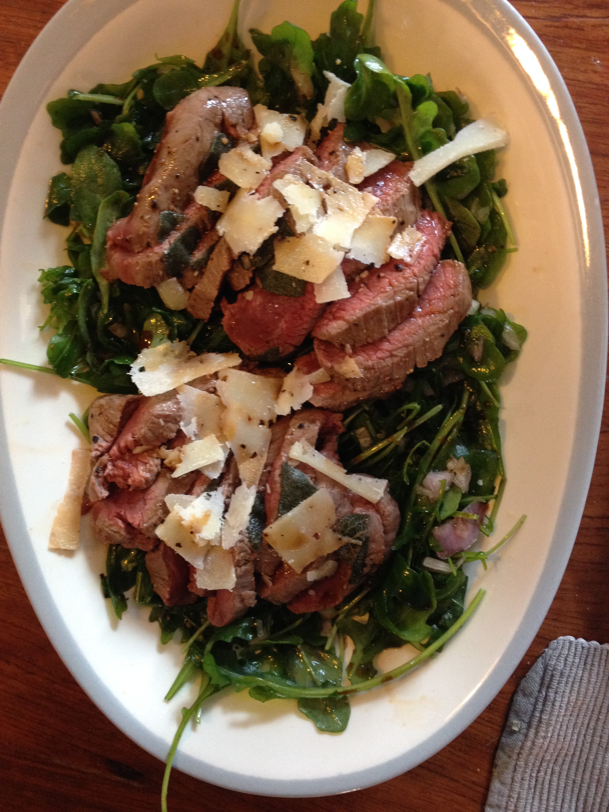 - Slice the rested meat in thin slices. Serve with the rocket lettuce, and Parmesan cheese. Pour over some balsamic vinegar