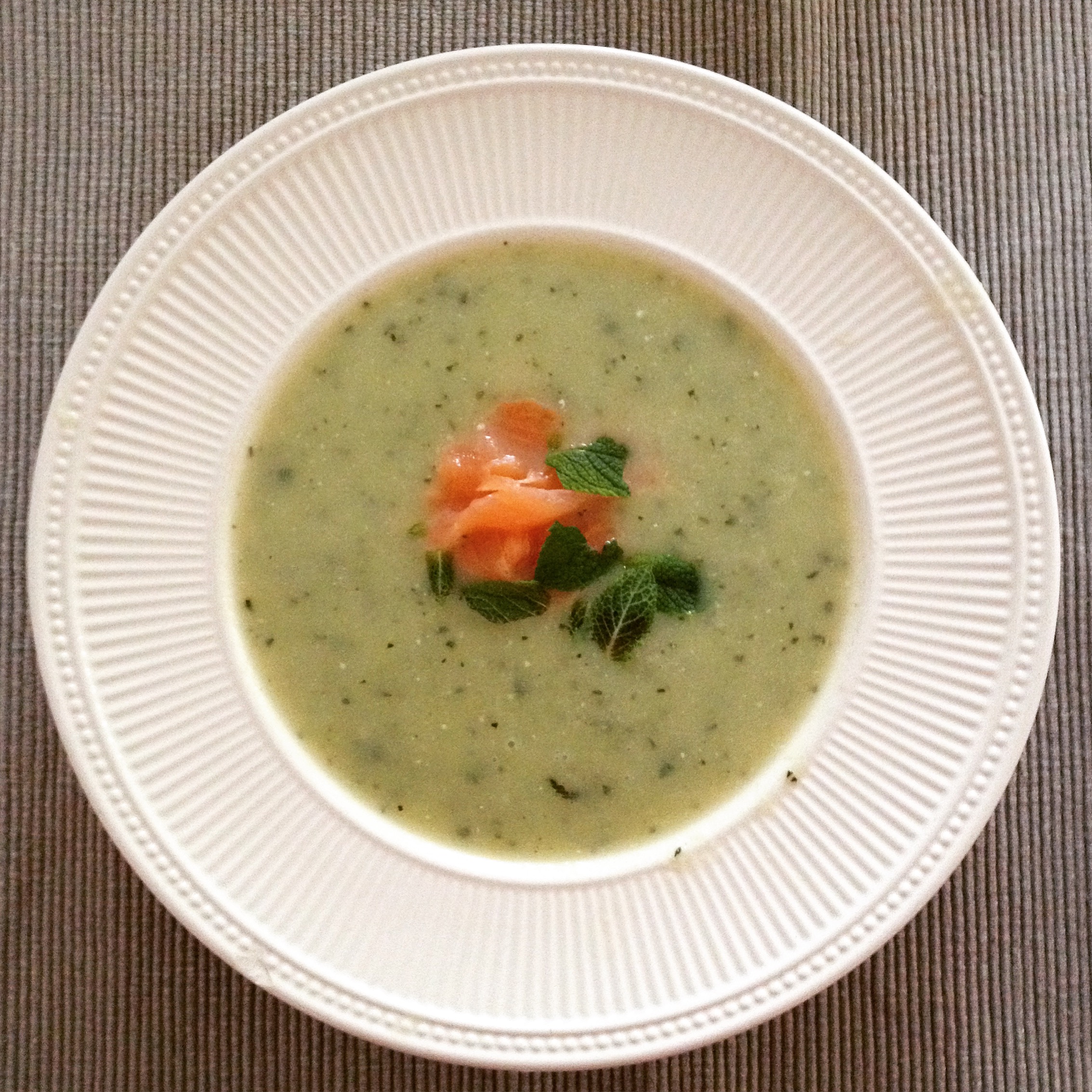 Zucchini Mint Soup with Smoked Salmon