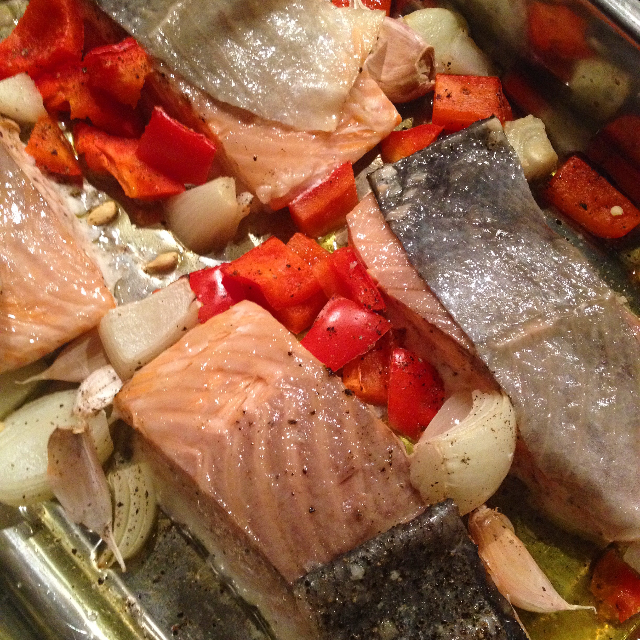 Crispy Salmon with Roasted Vegetables